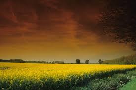 tout le long du chemin, le vent d'est dans le colza en fleurs